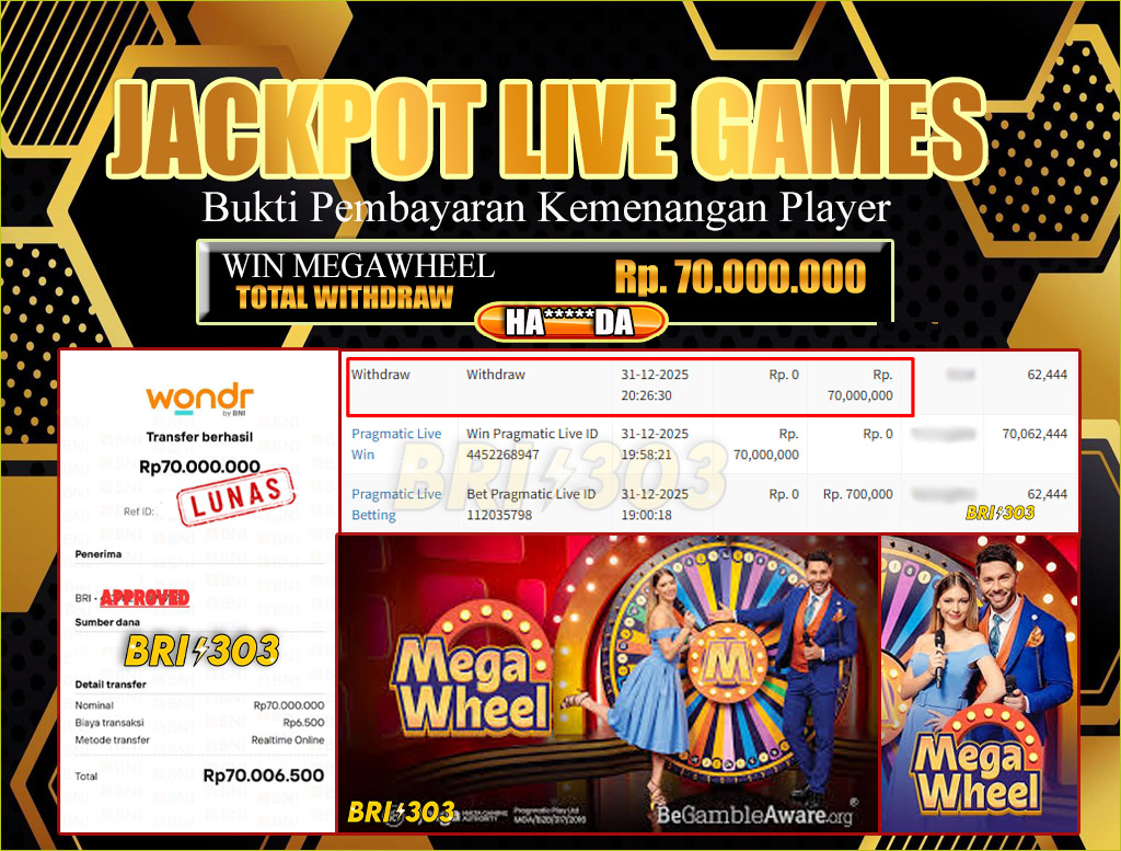 BRI303 JACKPOT LIVE GAMES 31 DESEMBER 2025 Rp.10.000.000,- LUNAS
