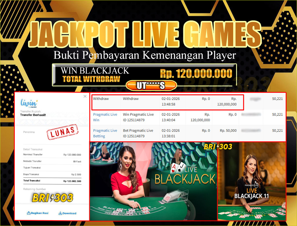 BRI303 JACKPOT LIVE GAMES 02 JANUARI 2026 Rp.120,000,000,- LUNAS