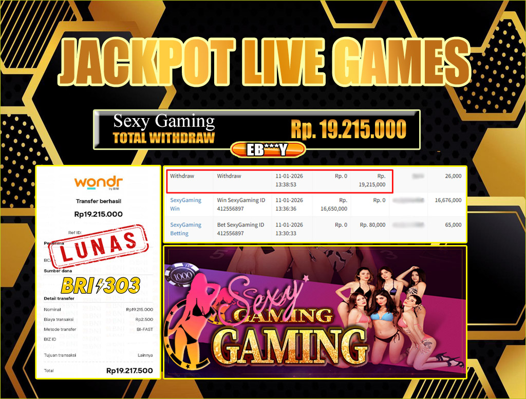 BRI303 JACKPOT LIVE GAMES 11 JANUARI 2026 Rp.19,215,000,- LUNAS