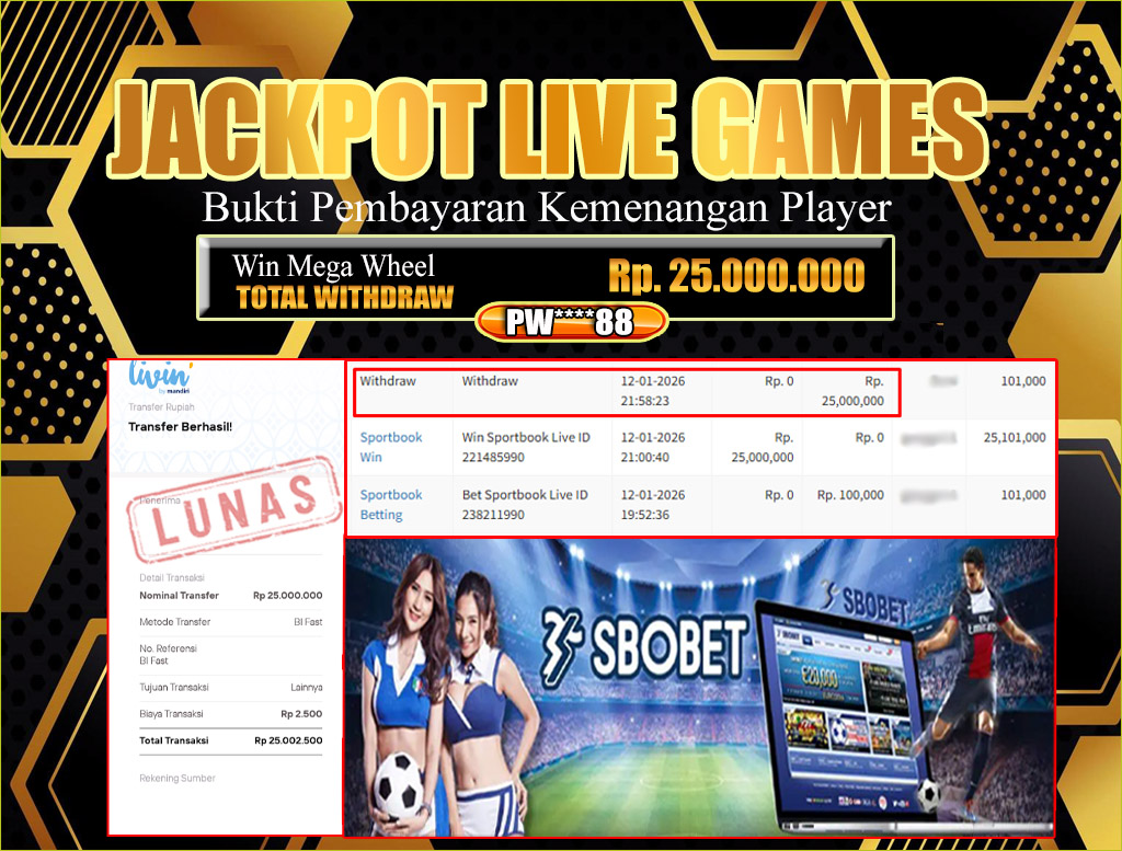 BRI303 JACKPOT LIVE GAMES : Selamat kepada User ID: PW****88 telah berhasil memenangkan hadiah besar senilai Rp.25,000,000 di permainan JACKPOT LIVE GAMES : SBOBET! Proses pencairan dana hanya memakan waktu 3-5 menit setelah pengisian formulir withdraw. Bukti pembayaran kami adalah SAH/VALID, langsung dari transaksi bank tujuan pemenang.