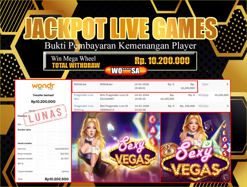 BRI303 JACKPOT LIVE GAMES : Selamat kepada User ID: WO****SA telah berhasil memenangkan hadiah besar senilai Rp.10,200,000 di permainan JACKPOT LIVE GAMES : SEXY GAME! Proses pencairan dana hanya memakan waktu 3-5 menit setelah pengisian formulir withdraw. Bukti pembayaran kami adalah SAH/VALID, langsung dari transaksi bank tujuan pemenang.