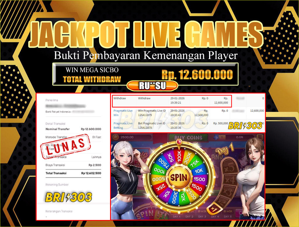 BRI303 JACKPOT LIVE GAMES 29 JANUARI 2026 Rp.12,600,000,- LUNAS