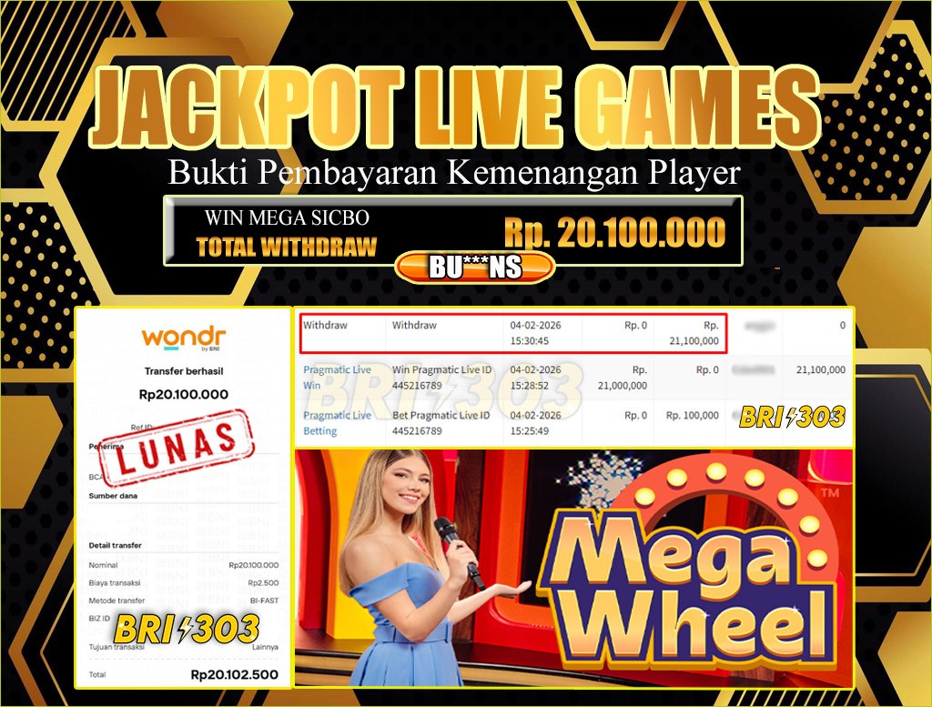 BRI303 JACKPOT LIVE GAMES 04 FEBRUARI 2026 Rp.20,100,000,- LUNAS