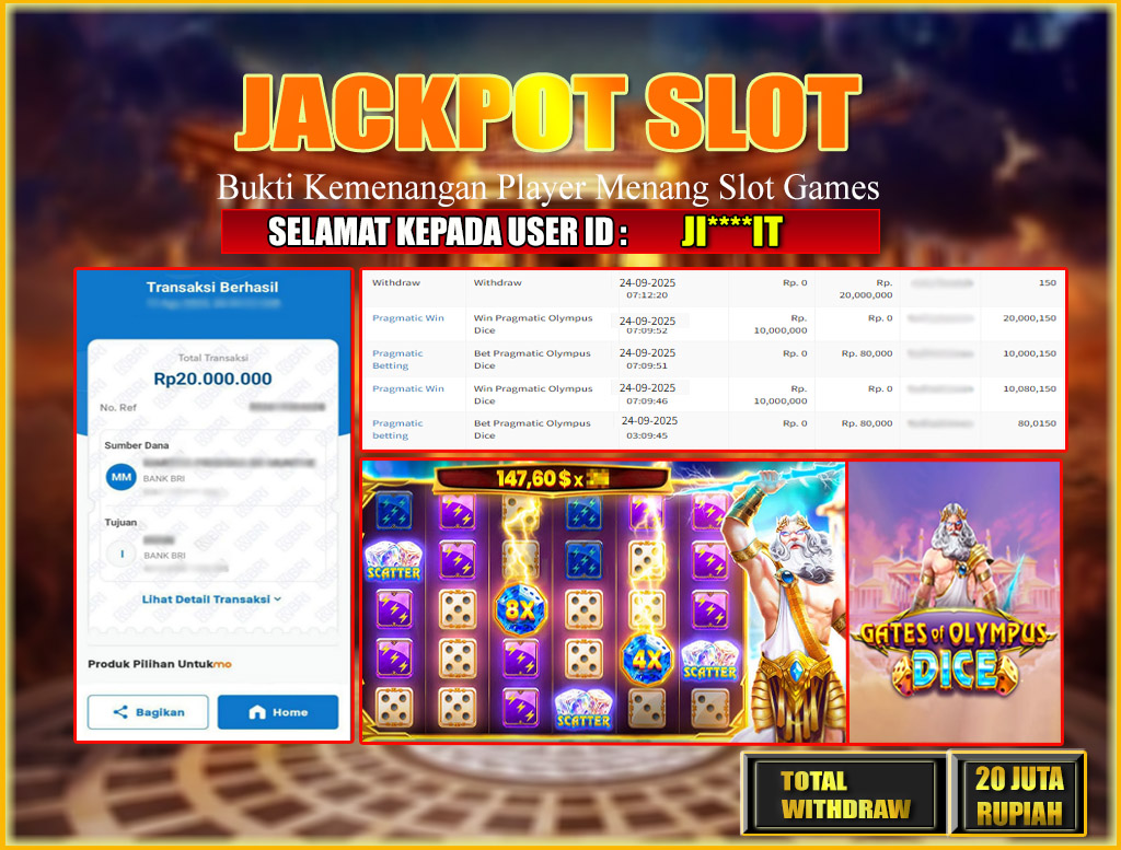 BRI303 JACKPOT SLOT GAMES 24/09/2025 Rp.20,000,000,- LUNAS