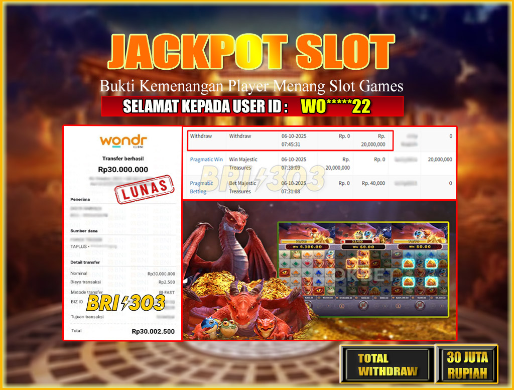 BRI303 JACKPOT SLOT GAMES 07/10/2025 Rp.30,000,000,- LUNAS