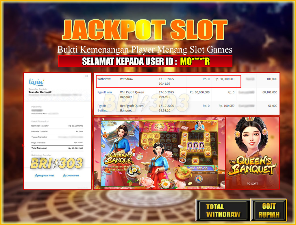 BRI303 JACKPOT SLOT GAMES 17/10/2025 Rp.20,000,000,- LUNAS