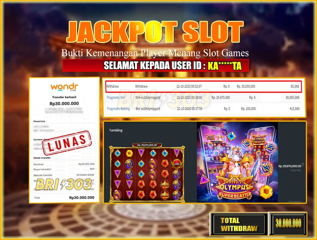 BRI303 JACKPOT SLOT GAMES 22/10/2025 Rp.30,000,000,- LUNAS