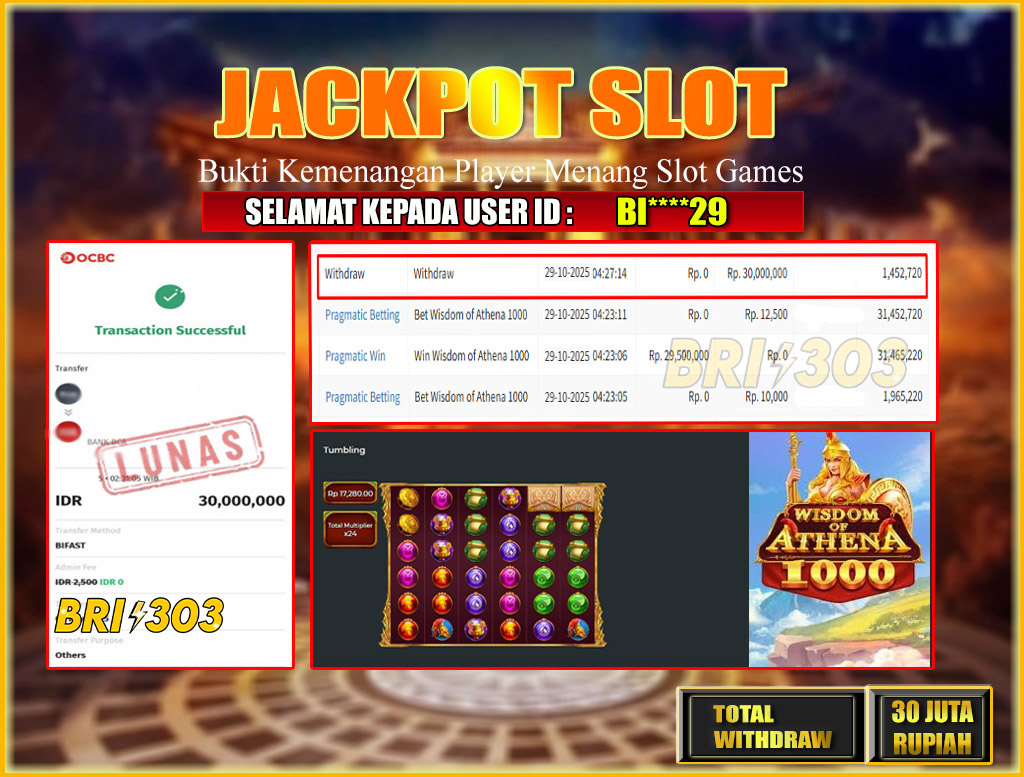 BRI303 JACKPOT SLOT GAMES 29 OKTOBER 2025 Rp.30,000,000,- LUNAS