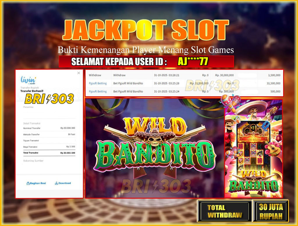 BRI303 JACKPOT SLOT GAMES 31 OKTOBER 2025 Rp.30,000,000,- LUNAS
