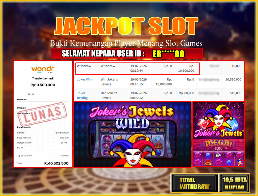 BRI303 JACKPOT SLOT GAMES : Selamat kepada User ID: ER*****00 telah berhasil memenangkan hadiah besar senilai Rp.10,500.000  di permainan JACKPOT SLOT GAMES: JOKER’S JEWELS! Proses pencairan dana hanya memakan waktu 3-5 menit setelah pengisian formulir withdraw. Bukti pembayaran kami adalah SAH/VALID, langsung dari transaksi bank tujuan pemenang.
