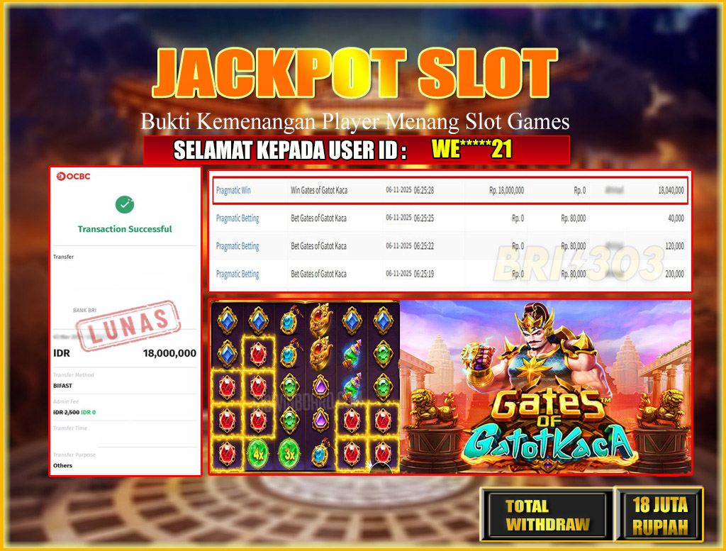 BRI303 JACKPOT SLOT GAMES 06 NOVEMBER 2025 Rp.18,000,000,- LUNAS