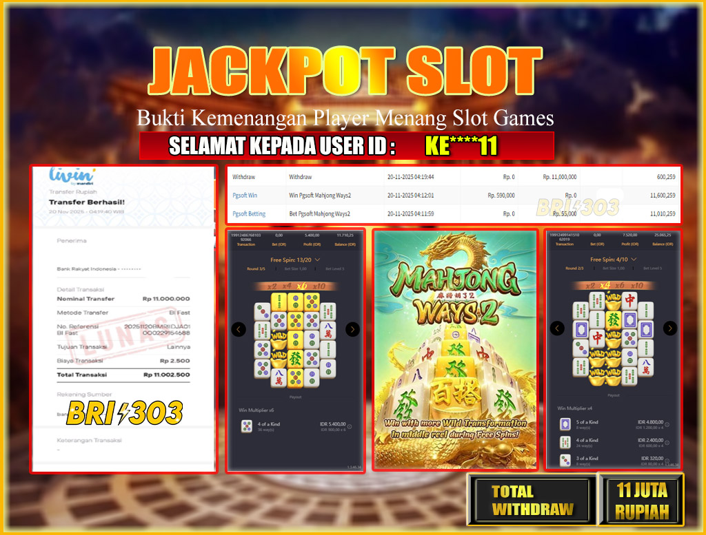 BRI303 JACKPOT SLOT GAMES 20 NOVEMBER 2025 Rp.11,000,000,- LUNAS
