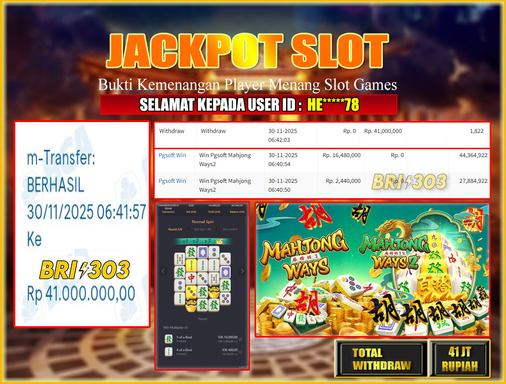 BRI303 JACKPOT SLOT GAMES 30 NOVEMBER 2025 Rp.41,000,000,- LUNAS