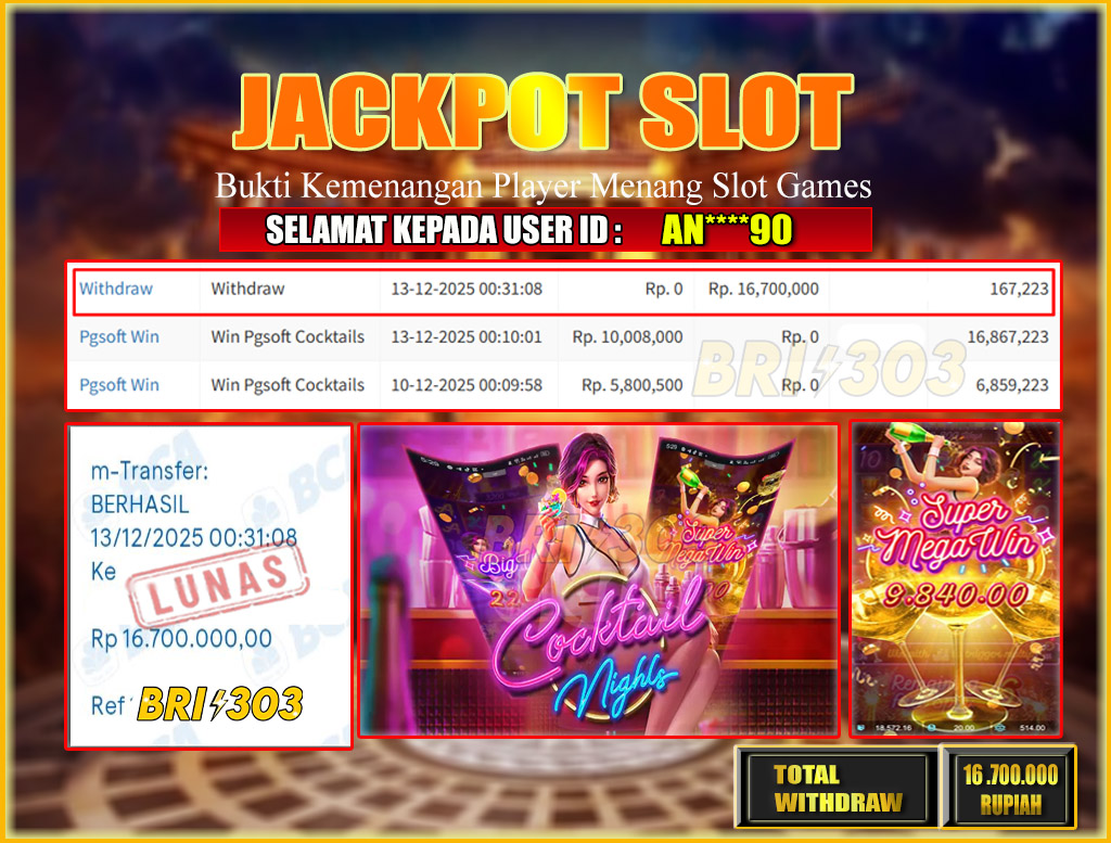 BRI303 JACKPOT SLOT GAMES 13 DESEMBER 2025 Rp.16,700,000,- LUNAS