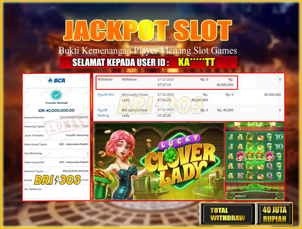 BRI303 JACKPOT SLOT GAMES 17 DESEMBER 2025 Rp.40,000,000,- LUNAS