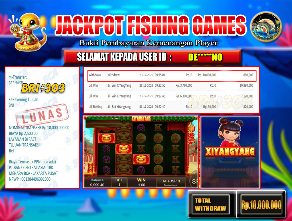 BRI303 JACKPOT SLOT GAMES 23 DESEMBER 2025 Rp.10,000,000,- LUNAS
