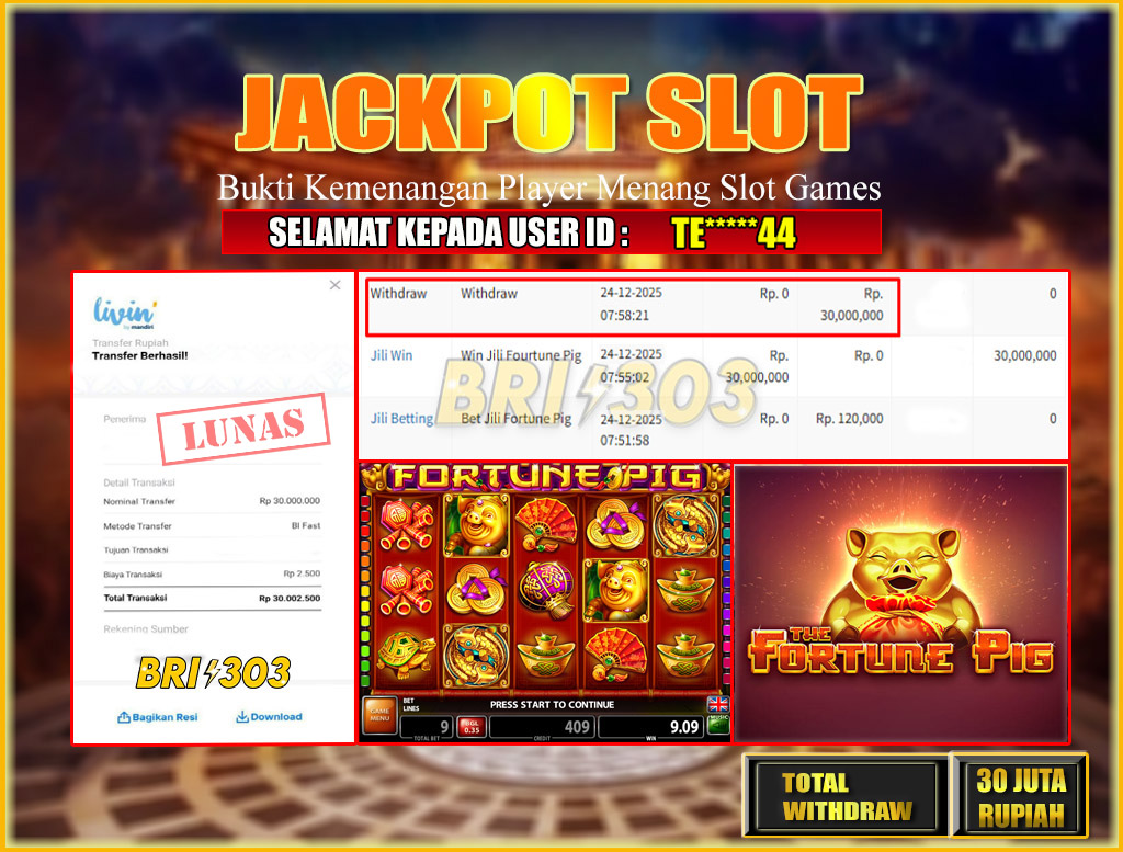 BRI303 JACKPOT SLOT GAMES 24 DESEMBER 2025 Rp.30,000,000,- LUNAS