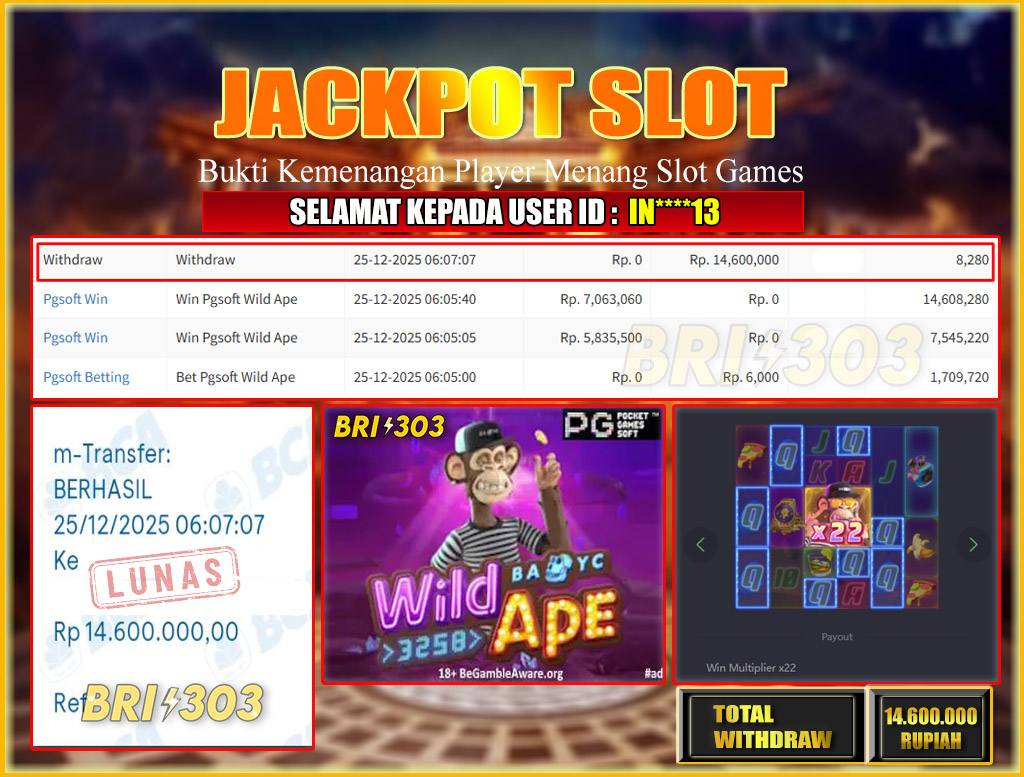 BRI303 JACKPOT SLOT GAMES 25 DESEMBER 2025 Rp.14,600,000,- LUNAS