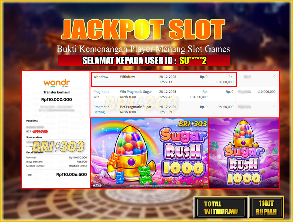 BRI303 JACKPOT SLOT GAMES 28 DESEMBER 2025 Rp.110,000,000,- LUNAS
