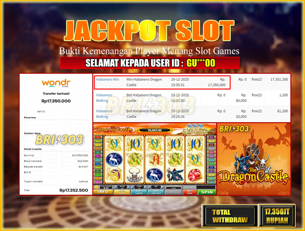 BRI303 JACKPOT SLOT GAMES 29 DESEMBER 2025 Rp.17,350,000,- LUNAS