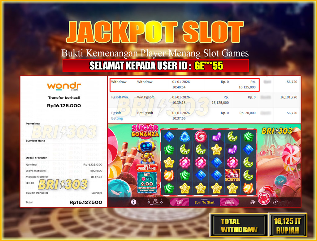 BRI303 JACKPOT SLOT GAMES 01 JANUARI 2026 Rp.16,125,000,- LUNAS
