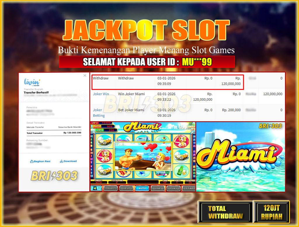 BRI303 JACKPOT SLOT GAMES 03 JANUARI 2026 Rp.120,000,000,- LUNAS