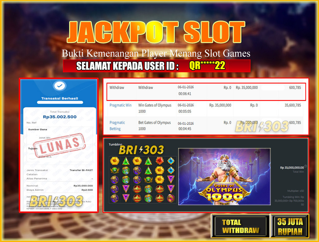 BRI303 JACKPOT SLOT GAMES 06 JANUARI 2026 Rp.35,000,000,- LUNAS