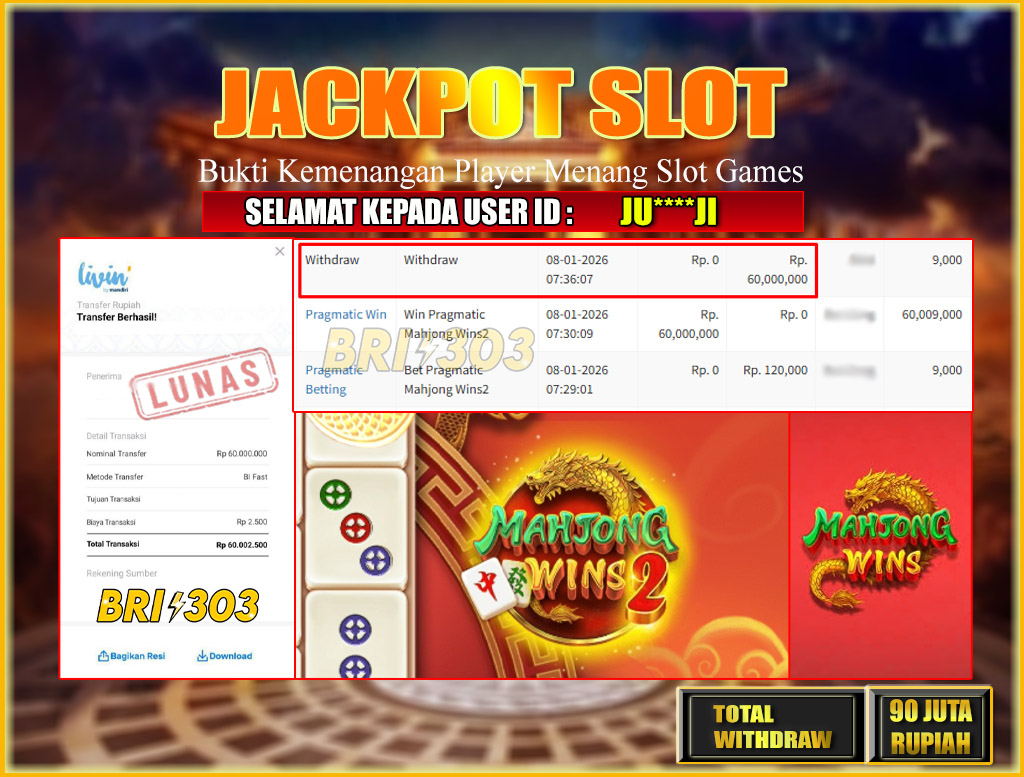 BRI303 JACKPOT SLOT GAMES 08 JANUARI 2026 Rp.90,000,000,- LUNAS