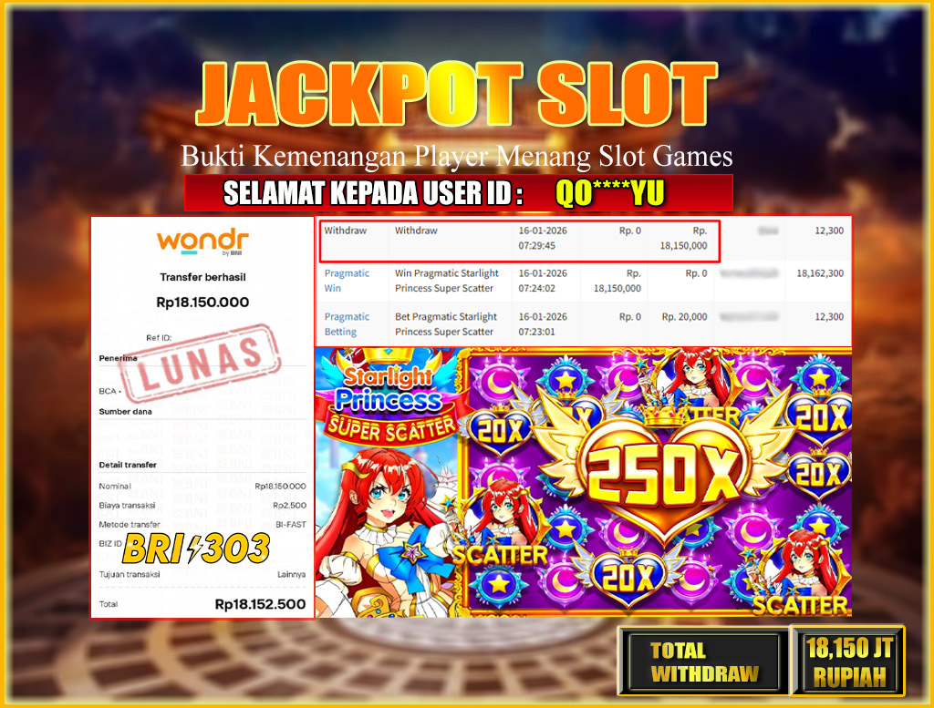 BRI303 JACKPOT SLOT GAMES 16 JANUARI 2026 Rp.18,150,000,- LUNAS