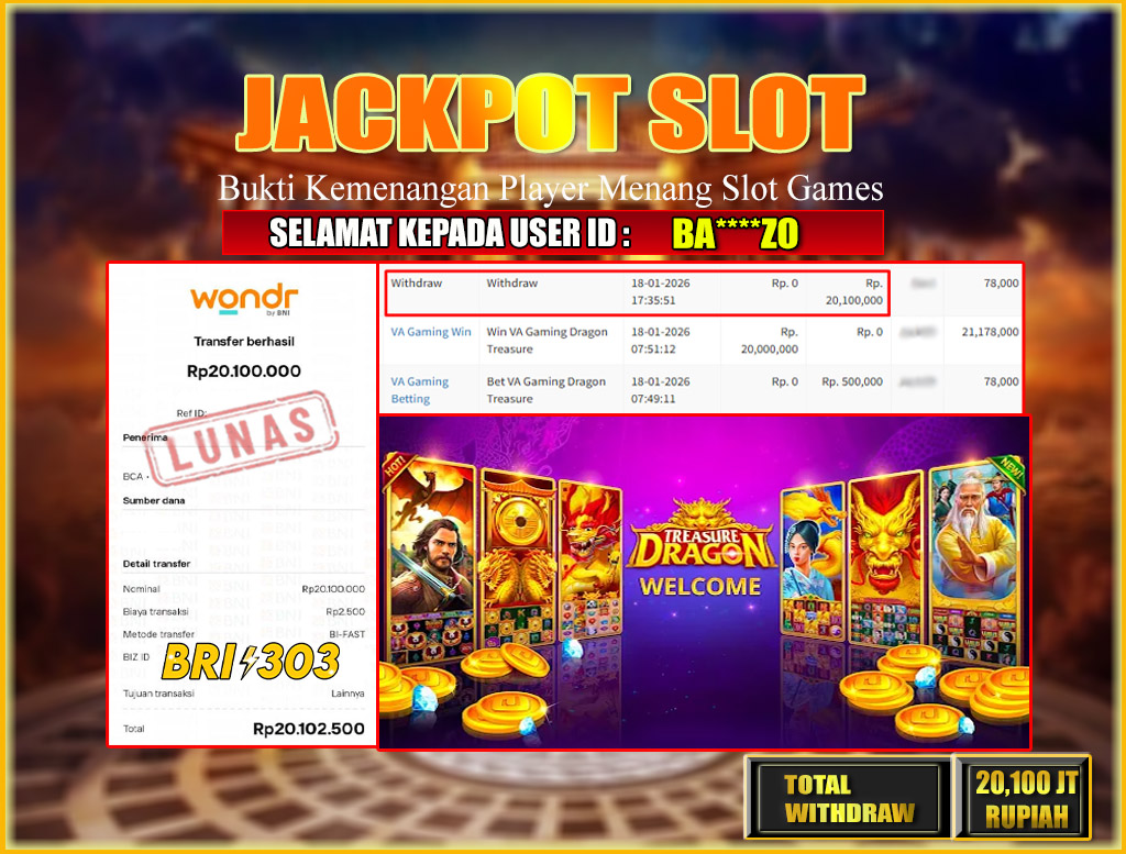 BRI303 JACKPOT SLOT GAMES 18 JANUARI 2026 Rp.20,100,000,- LUNAS