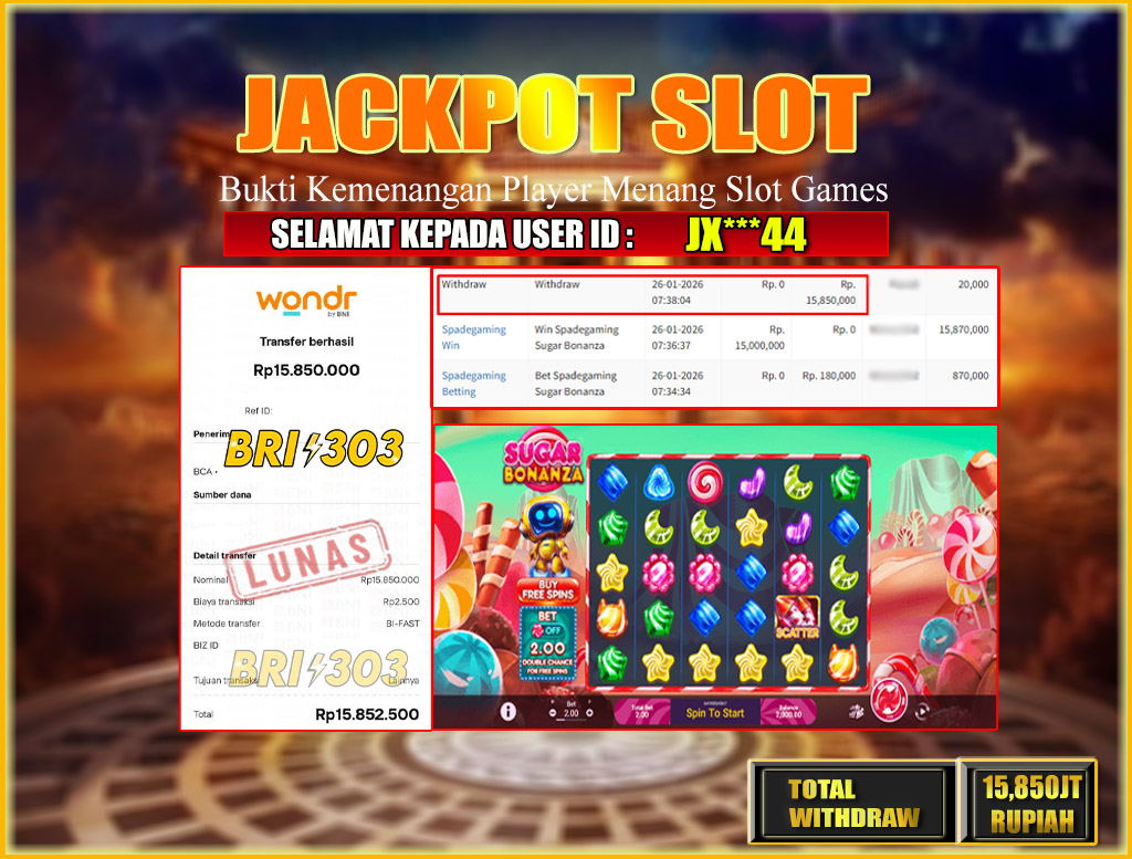 BRI303 JACKPOT SLOT GAMES 26JANUARI 2026 Rp.15,850,000,- LUNAS