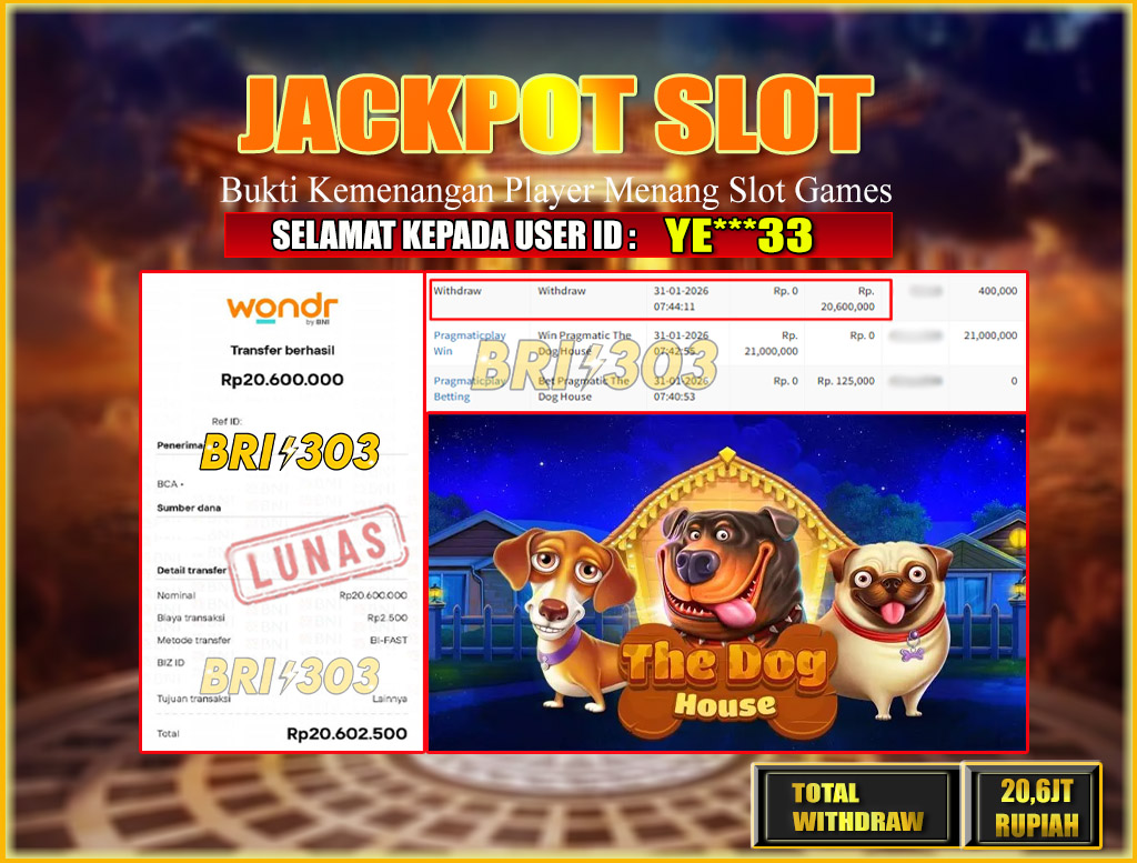 BRI303 JACKPOT SLOT GAMES 31 JANUARI 2026 Rp.20,600,000,- LUNAS