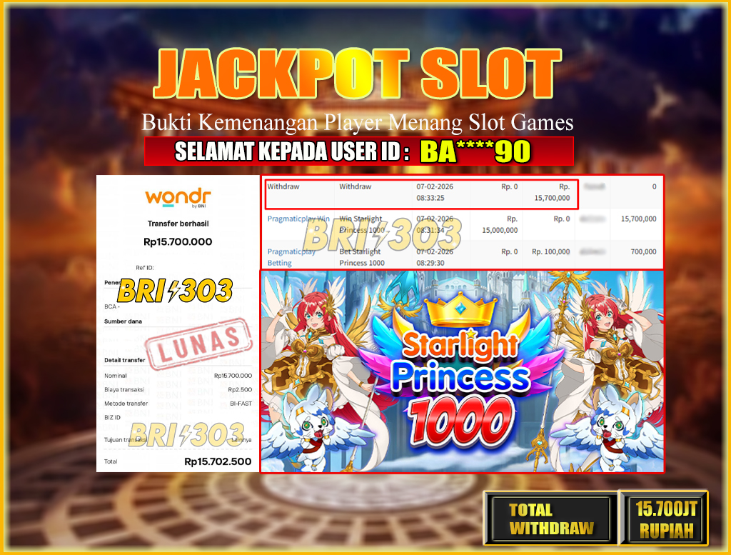 BRI303 JACKPOT SLOT GAMES 07 FEBRUARI 2026 Rp.15,700,000,- LUNAS
