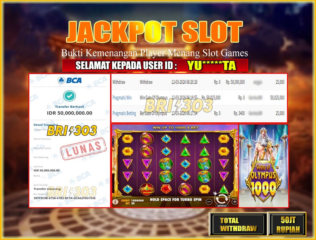 BRI303 JACKPOT SLOT GAMES 12 MARET 2026 Rp.50,000,000,- LUNAS