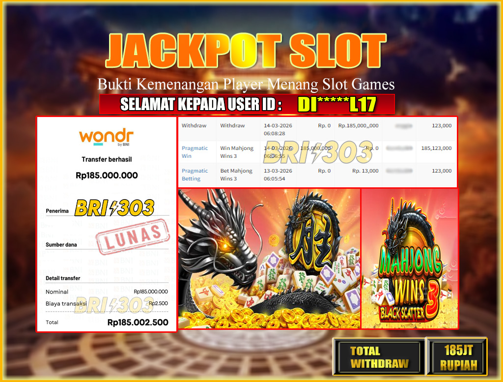 BRI303 JACKPOT SLOT GAMES 14 MARET 2026 Rp.185,000,000,- LUNAS