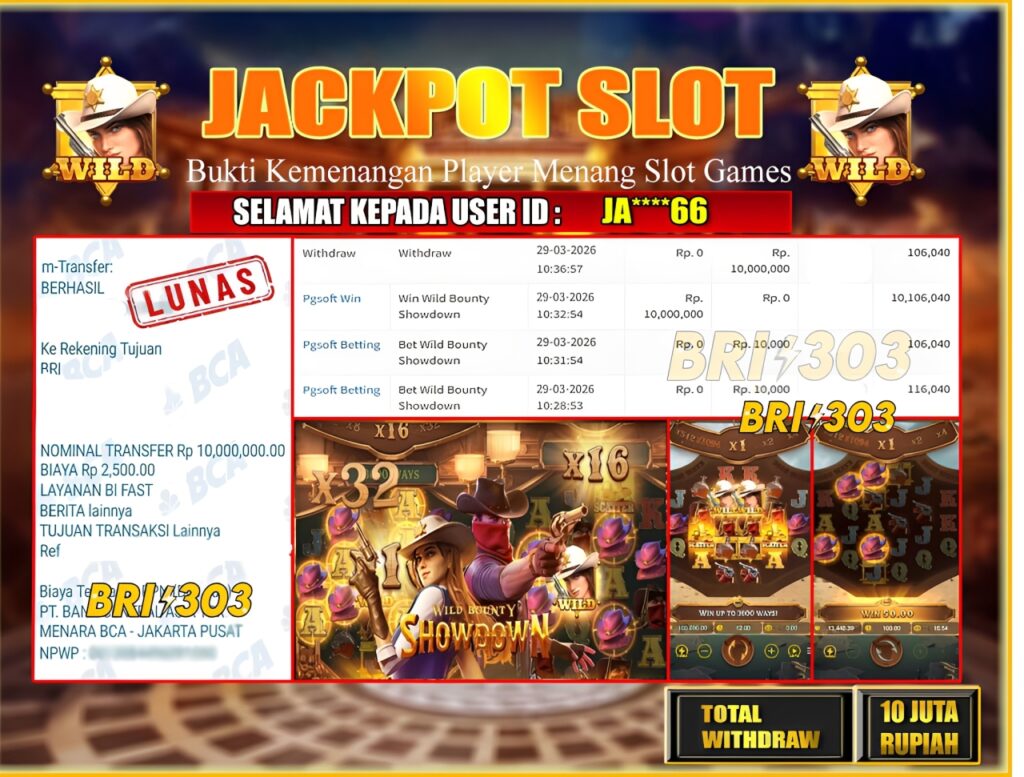 BRI303 JACKPOT SLOT GAMES 29 MARET 2026 Rp.10,000,000,- LUNAS