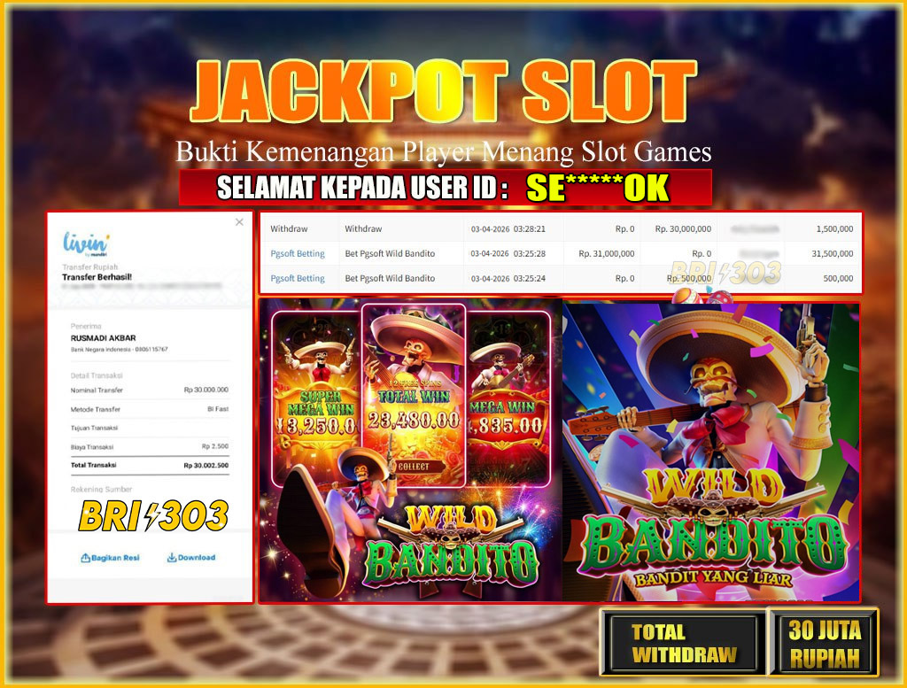 BRI303 JACKPOT SLOT GAMES 03 APRIL 2026 Rp.30,000,000,- LUNAS