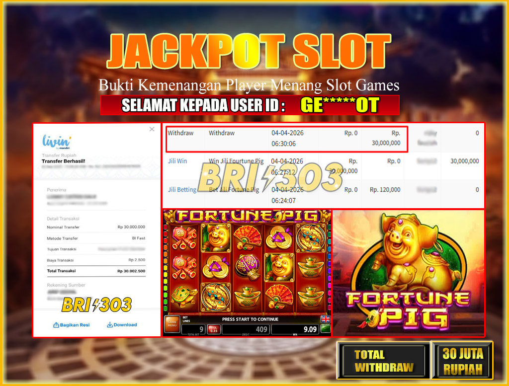 BRI303 JACKPOT SLOT GAMES 04 APRIL 2026 Rp.30,000,000,- LUNAS