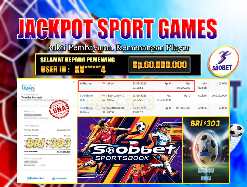 BRI303 JACKPOT SPORT GAMES 23 SEPTEMBER 2025 Rp.60.000.000,- LUNAS