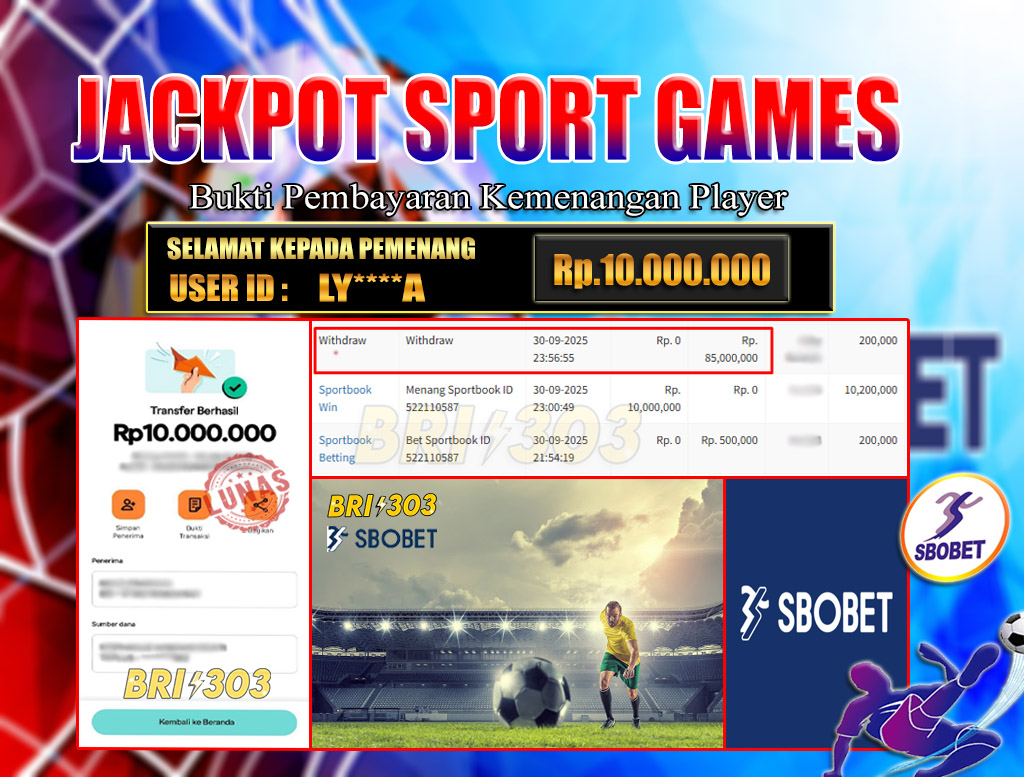 BRI303 JACKPOT SPORT GAMES 30 SEPTEMBER 2025 Rp.10.000.000,- LUNAS