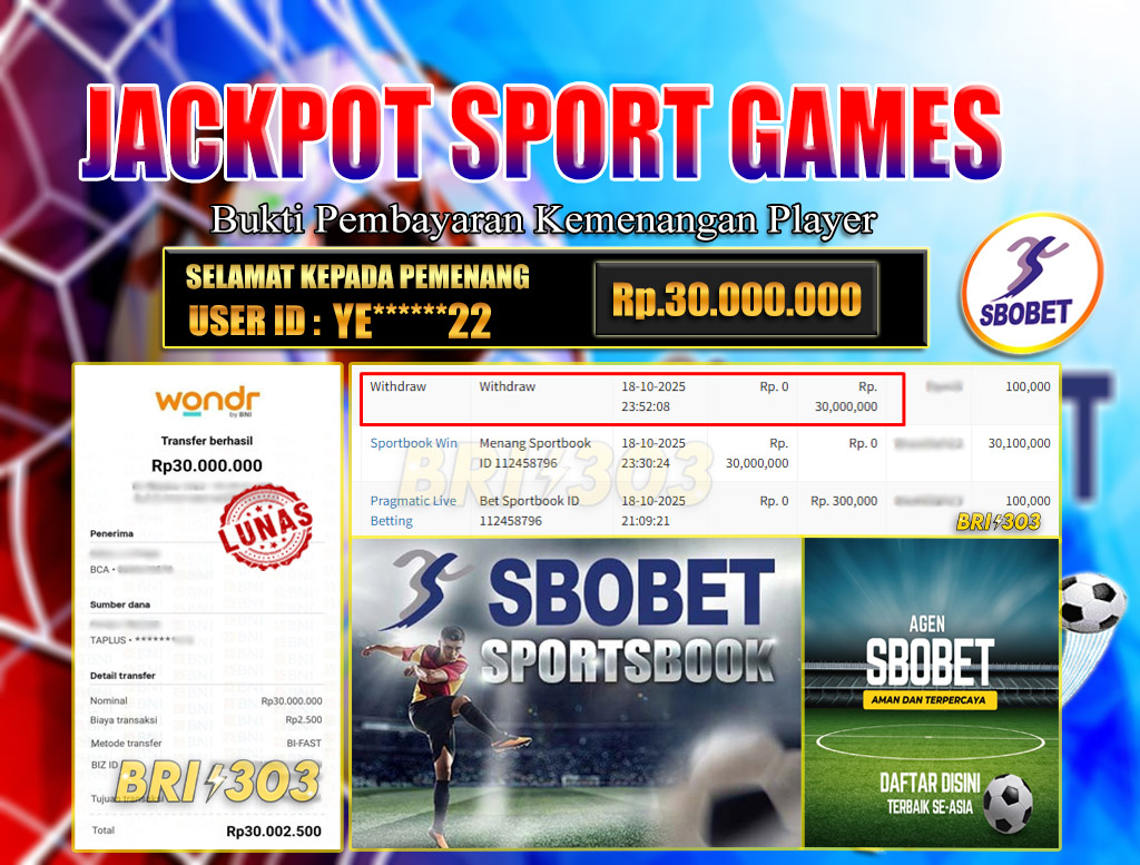 BRI303 JACKPOT SPORT GAMES 18 OKTOBER 2025 Rp.30.000.000,- LUNAS
