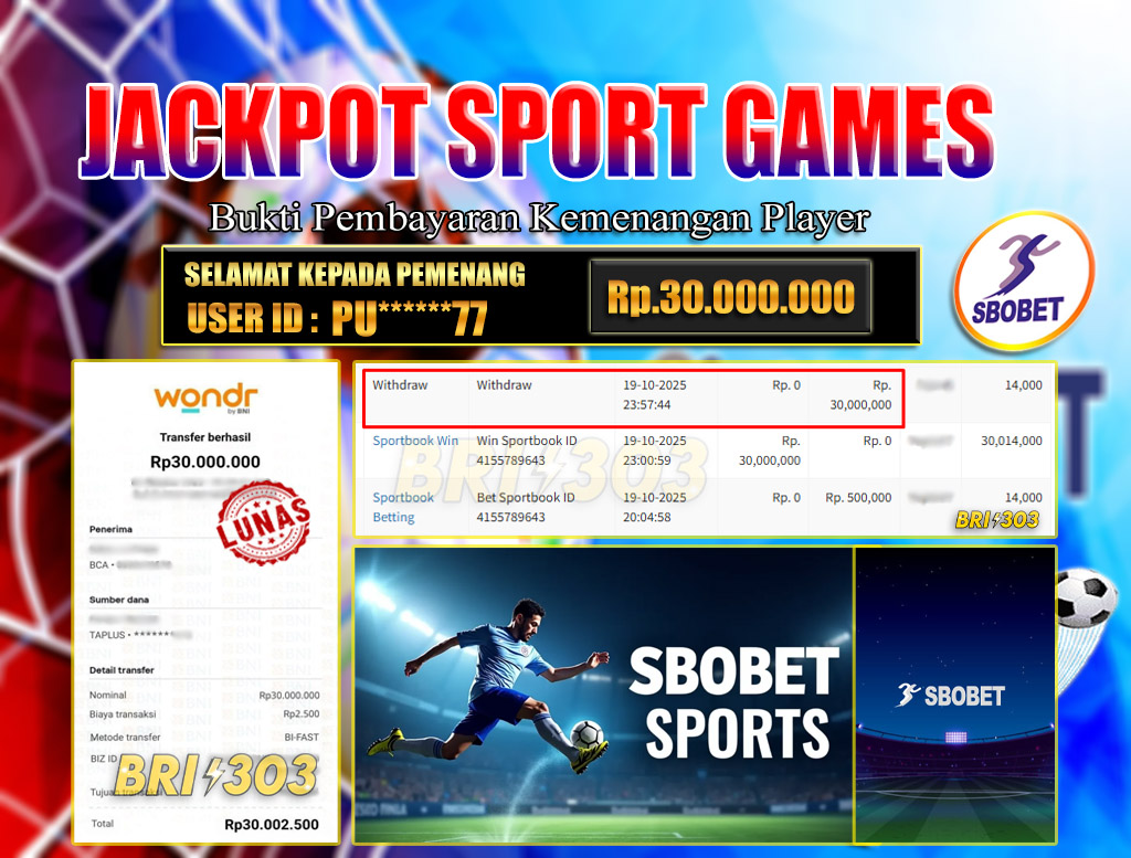 BRI303 JACKPOT SPORT GAMES 19 OKTOBER 2025 Rp.30.000.000,- LUNAS