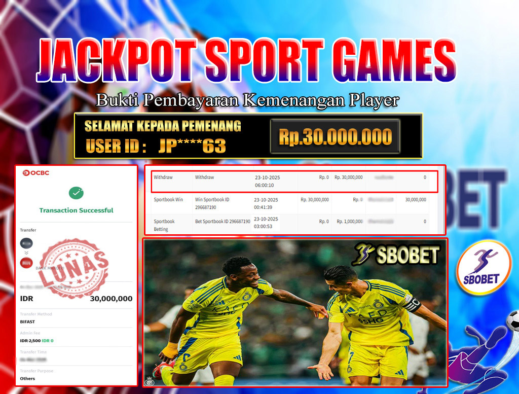 BRI303 JACKPOT SPORT GAMES 23 OKTOBER 2025 Rp.30.000.000,- LUNAS