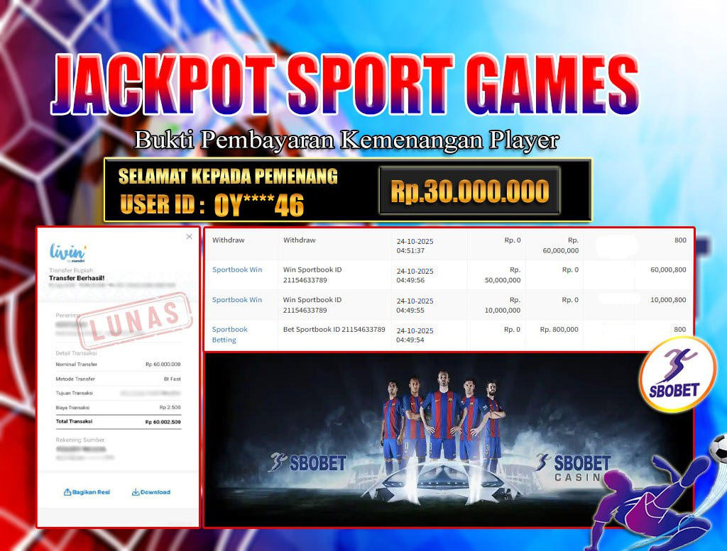 BRI303 JACKPOT SPORT GAMES 24 OKTOBER 2025 Rp.30.000.000,- LUNAS
