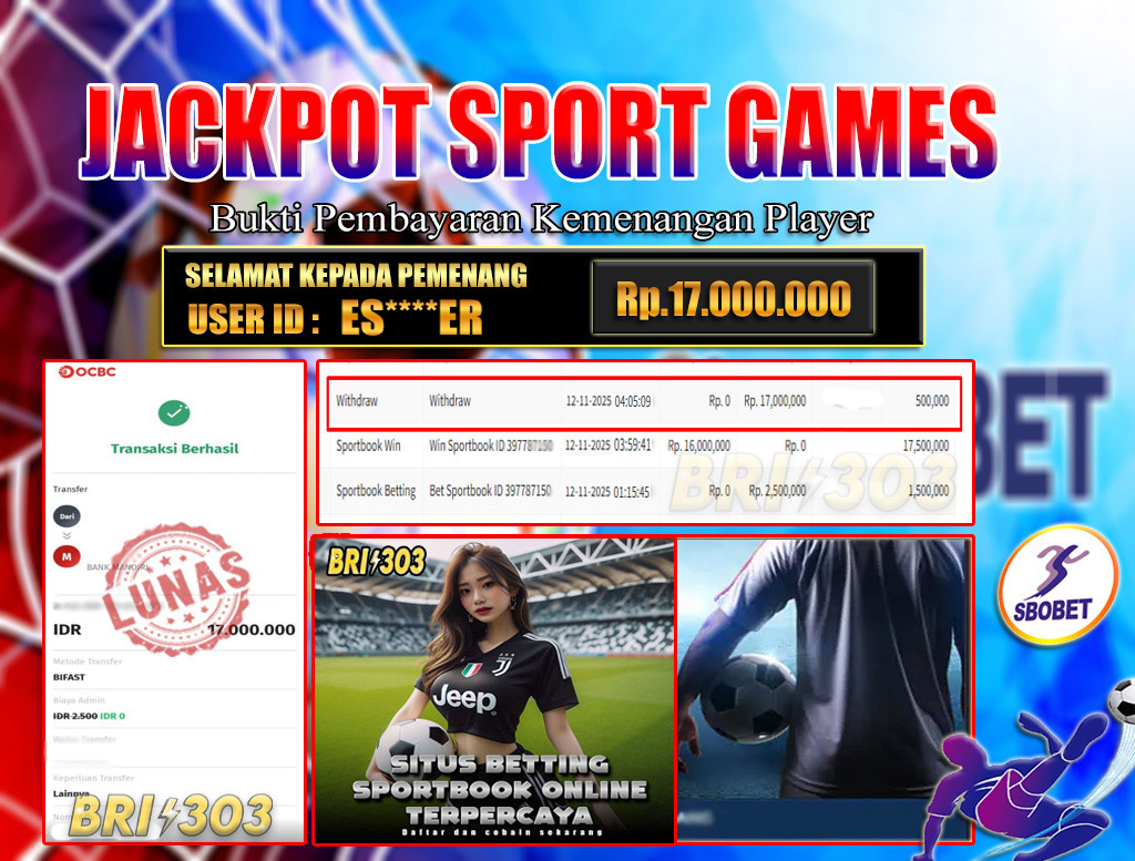 BRI303 JACKPOT SPORT GAMES 12 NOVEMBER 2025 Rp.17.000.000,- LUNAS