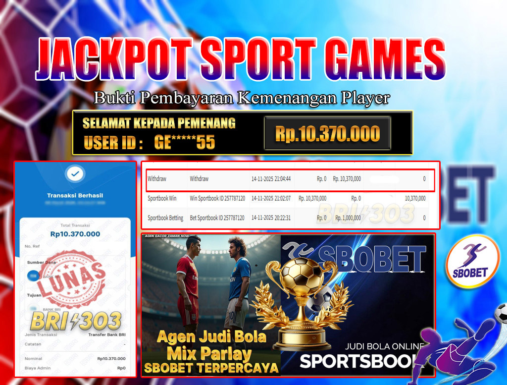 BRI303 JACKPOT SPORT GAMES 14 NOVEMBER 2025 Rp.10.370.000,- LUNAS