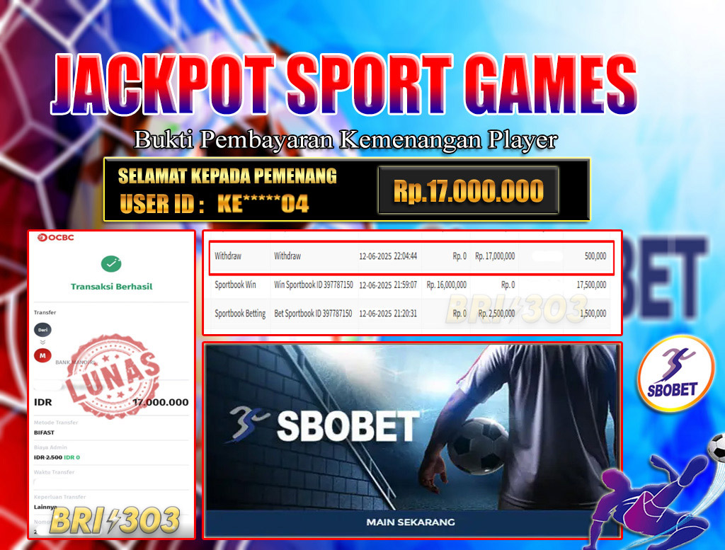 BRI303 JACKPOT SPORT GAMES 16 NOVEMBER 2025 Rp.60.000.000,- LUNAS