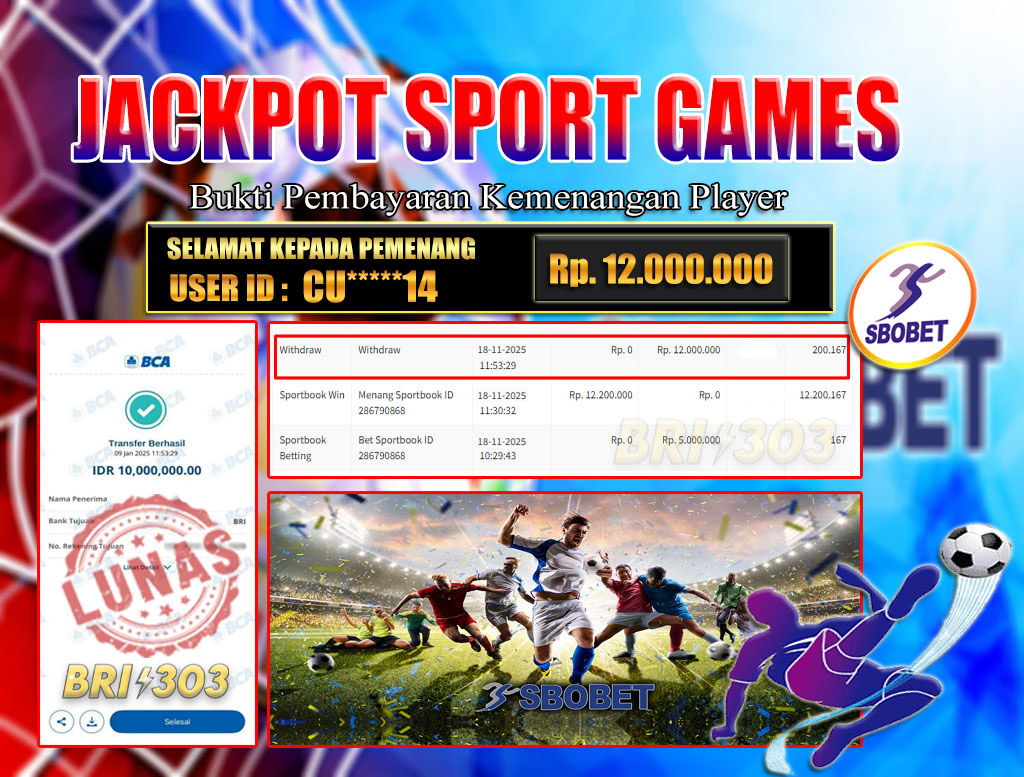 BRI303 JACKPOT SPORT GAMES 18 NOVEMBER 2025 Rp.12.000.000,- LUNAS