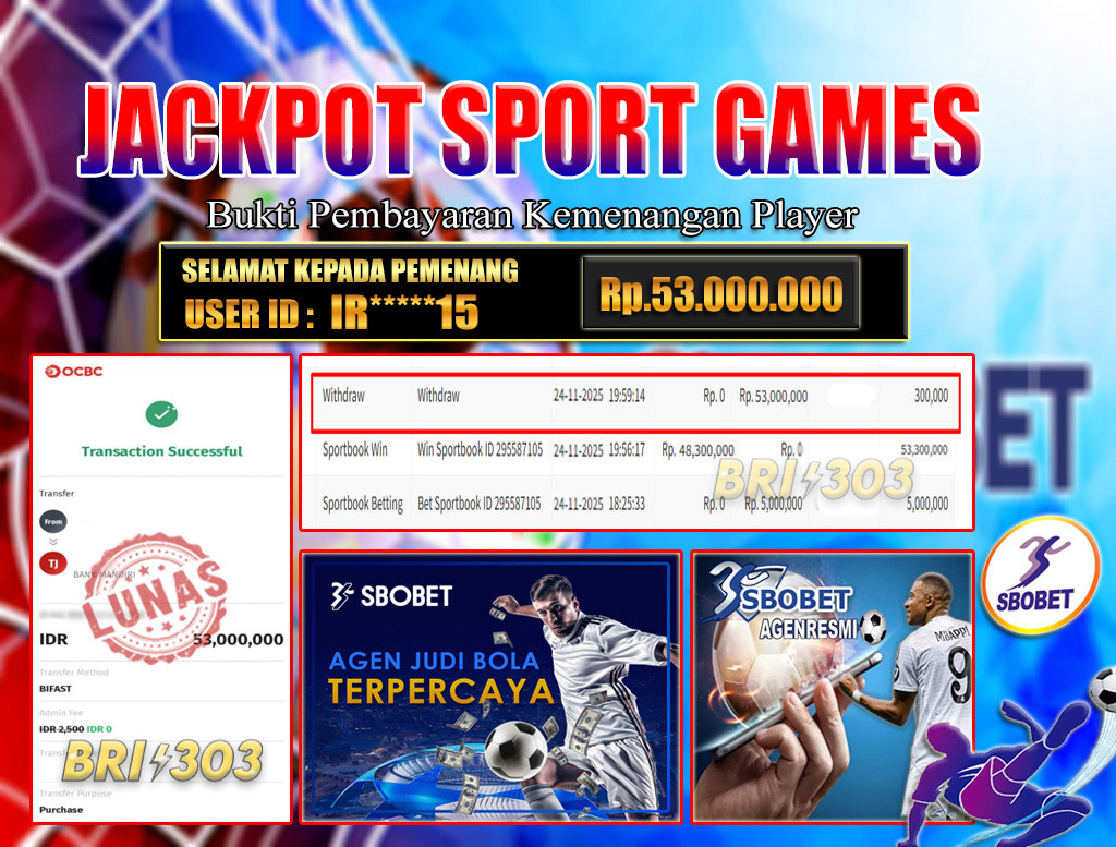 BRI303 JACKPOT SPORT GAMES 24 NOVEMBER 2025 Rp.53.000.000,- LUNAS