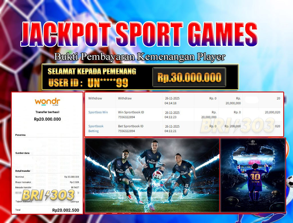 BRI303 JACKPOT SPORT GAMES 26 NOVEMBER 2025 Rp.30.000.000,- LUNAS